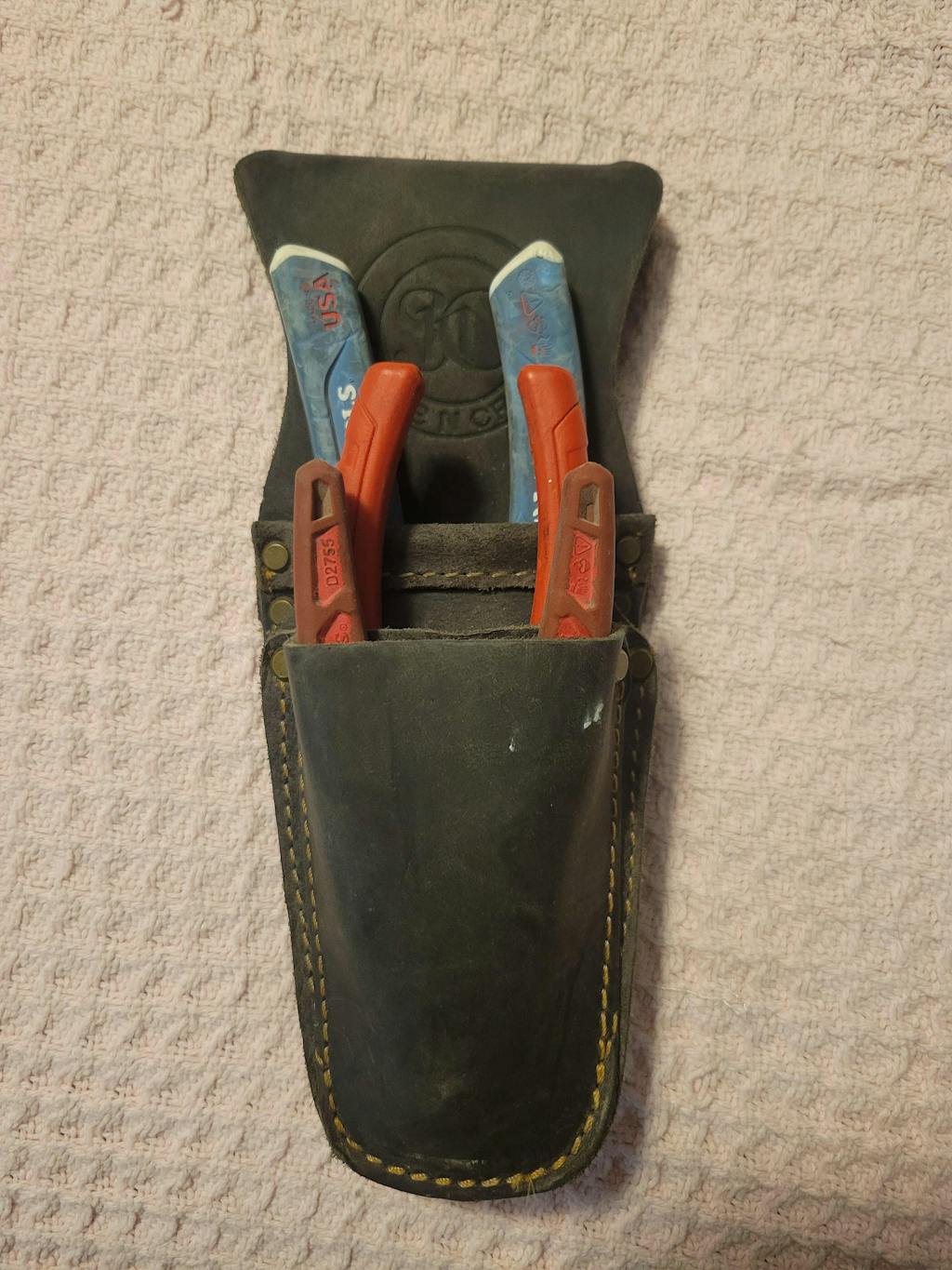 Middle pocket holds Klein 2100-5 scissors